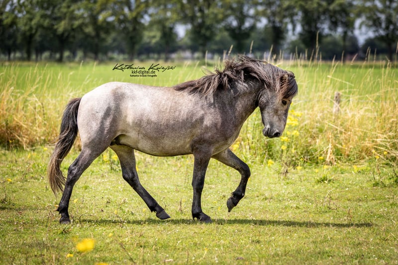 Mogli est un jeune hongre d'Aegidienberger très poli, intrépide et désireux d'apprendre. Depuis sa première année, Mogli a grandi au sein d’un troupeau de jeunes chevaux dans une réserve naturelle. Depuis octobre 2025, Mogli suit une formation de base et sera préparé à travailler sous la selle jusqu’au début février. Il apprend à être attaché, à être brossé, à être mené, travaille à pied, en activation duale, en extérieur, à l’entretien des sabots, en longe et double longe, à porter un filet et une selle, à s’habituer à la circulation routière, aux chiens, aux cyclistes, aux joggeurs, etc. Le père de Mogli est le prestigieux étalon d’Aegidienberger Menor GPZ. Menor est multiple champion d’Allemagne dans diverses disciplines de gaited sport, a reçu en 2009 et 2016 le titre de « Gaited Horse of the Year » et est l’Aegidienberger le mieux noté avec une note exceptionnelle de 9,5 pour sa conformation. La mère de Mogli est une jument islandaise à quatre allures. Meyja possède d’excellentes allures de base et un Tölt très clair. Elle participe avec succès à la Working Gaited Equestrian. C’est un cheval très amusant, notamment grâce à sa grande motivation et sa polyvalence. Avec cette lignée, Mogli promet d’être un cheval polyvalent et fiable pour la loisir comme pour le sport. Mogli recherche un cavalier prêt à poursuivre sa formation afin de progresser ensemble.