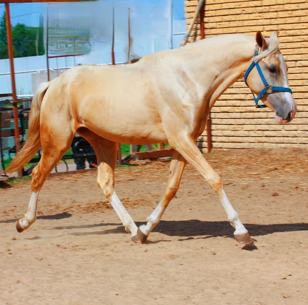 Achaltekische Vollblutstute Hell-Solovaya-Farbe, Vier weiße Beine, perfekte Proportionen. Geburtsjahr 2023 Derzeitige Größe 1,54 m (15,4 hh) Vater in Isabellfarben, Kanagat (Turkmenistan) Vollständiger Pass vom VNIiK Eine außergewöhnliche Pferd in Bezug auf Exterieur und Charakter! Gesund, ohne Verhaltensprobleme oder Makel.