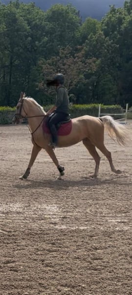 **Annuncio di Vendita: Giumenta Akhal-Teke** Siamo lieti di presentare una straordinaria giumenta Akhal-Teke, nata nel 2021. Questa bellissima cavalla palomino è un vero gioiello, con un'altezza al garrese di 162 cm. Caratteristiche principali: - Razza: Akhal-Teke - Genere: Giumenta - Anno di nascita: 2021 - Colore: Palomino - Altezza al garrese: 160 cm - Attitudine: Salto La nostra giumenta è dotata di un carattere dolce e affettuoso. È pronta per sviluppare ulteriormente le sue abilità nel salto, ma sarebbe perfetta anche per altre discipline come il dressage e l’ endurance. Adatta a cavalieri esperti, non a principianti. Se siete interessati a conoscere meglio questa meravigliosa cavalla o desiderate ulteriori informazioni, non esitate a contattarci. Sarà un piacere rispondere a tutte le vostre domande e organizzare una visita! Non perdete l'occasione di avere con voi un compagno di avventure unico!