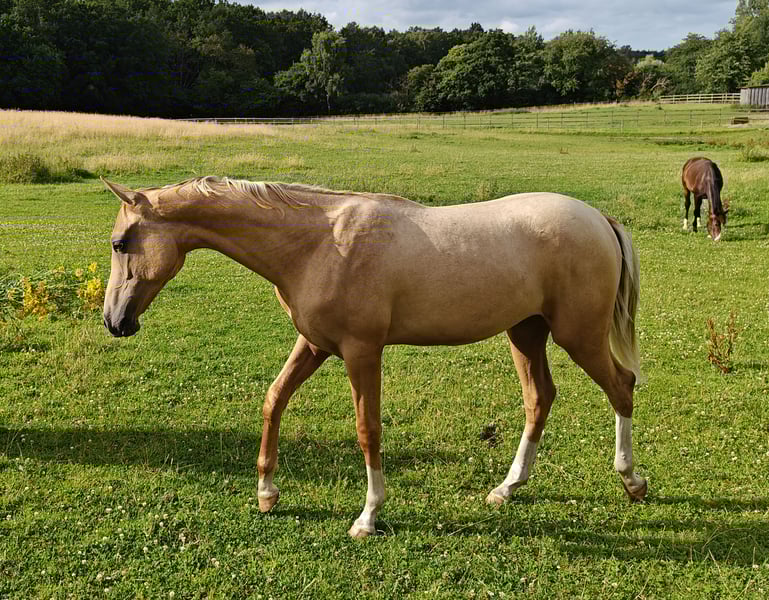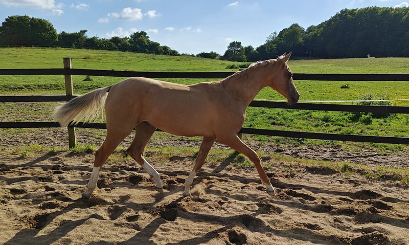 Elegancki ogier akhal-teke na sprzedaż Poznaj piękno i grację tego wspaniałego ogiera akhal-teke urodzonego w 2023 roku. Zdobył tytuł Rezerwy Absolutnego Mistrza na Mistrzostwach Europy Akhal Teke we Francji w 2025 roku. Z efektowną sierścią palomino i obecnym wzrostem 155 cm, który wciąż rośnie, stanowi przykład słynnej elegancji i atletyzmu rasy. Hodowany z myślą o doskonałości, ten młody ogier posiada znakomite linie hodowlane, co czyni go idealnym kandydatem do przyszłych startów, hodowli i rekreacji. Obaj rodzice brali udział w zawodach wytrzymałościowych, a jego ojciec był koniem wyścigowym w Rosji. Jego prawidłowa budowa i promienny wygląd sprawiają, że wyróżnia się w każdym otoczeniu. Nie przegap okazji, aby nabyć tego wyjątkowego konia z obiecującą przyszłością. Skontaktuj się z nami już dziś, aby dowiedzieć się więcej!