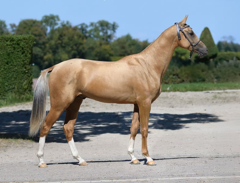 Eleganter Akhal-Teke Hengst zu verkaufen Entdecken Sie die Schönheit und Anmut dieses beeindruckenden im Jahr 2023 geborenen Akhal-Teke Hengstes. Er wurde 2025 bei den Europäischen Akhal-Teke Meisterschaften in Frankreich zum Reserve Absolute Champion gekürt. Mit einem auffälligen Palomino-Fell und einer aktuellen Größe von 155 cm, die noch wächst, verkörpert er die bekannte Eleganz und Athletik der Rasse. Für Exzellenz gezogen, verfügt dieser junge Hengst über ausgezeichnete Zuchtlinien und ist somit eine ideale Wahl für zukünftige Turniere, Zucht und den allgemeinen Pferdesport. Sowohl die Eltern haben an Ausdauerwettbewerben teilgenommen, sein Vater war in Russland ein Rennpferd. Seine korrekte Konformation und sein strahlendes Erscheinungsbild machen ihn zu einem Blickfang in jeder Umgebung. Verpassen Sie nicht die Gelegenheit, dieses außergewöhnliche Pferd mit vielversprechender Zukunft zu erwerben. Kontaktieren Sie uns noch heute, um mehr zu erfahren! https://www.base.ruhorses.ru/horse/1316350/card/en