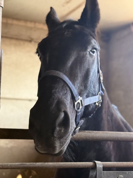 Zum Verkauf steht Karino ein am 18.04.2008 geborerener Alt Oldenburger Rappe im Barocktyp stehend. Für ihn wird ein Platz gesucht, mit Erfahrung im Umgang mit schwereren Pferderassen, wichtig ist eine konsequente und klare Führung. Derzeit steht er in einer reinen Wallachherde & ist dort Herdenchef sehr souverän und fair. Er ist geritten, Halle, Platz & Gelände. Bodenarbeit und auch Tricks sind für ihn kein Fremdwort. Er ist barhuf Er ist regelmäßig entwurmt, geimpft und dem Pferdezahnarzt vorgestellt. Zudem wird er regelmäßig dem Schmied vorgestellt. Karino ist ein Menschenbezogener Wallach, der aber eine klare Führung benötigt. Man muss dazu sagen er ist Kolik operiert, seitdem traten keine Beschwerden mehr auf. Equidenpass ist vorhanden. Wird mit Zubehör abgegeben. Platz vor Preis, da der Besitzerin ein gutes erfahrenes Zuhause sehr wichtig ist. Wird wegen Krankheit seitens der Halter abgegeben. Er wird nicht an Reitschulen oder Händler abgegeben! Bei Interesse gerne melden 🙋🏼♀️ Gebe dann die Kontaktdaten weiter!