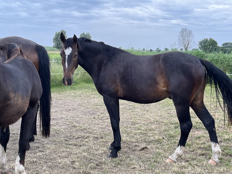 For sale is a promising two-year-old Oldenburg gelding, born on May 2, 2023. Key data: - Breed: Oldenburg - Gender: Gelding - Color: Dark brown - Date of birth: May 2, 2023 - Expected height: approx. 165 cm Description: This young gelding impresses with his great type, correct conformation, and very good basic gaits. He has an honest, people-oriented character, is extremely easy-going, and brings a lot of joy in daily handling. From the beginning, he has been regularly and lovingly worked with on the ground, knows the basics of foal training, and always shows himself to be cooperative – without being spoiled. A true young talent with the best prerequisites for all disciplines – whether leisure, dressage, or driving training – this gelding has everything one desires from a versatile riding horse. Further information and viewing available upon request. Location: Hengstweide Wesermarsch Price: €7400 Contact: 015228008206 or sdiers@web.de We look forward to your message!