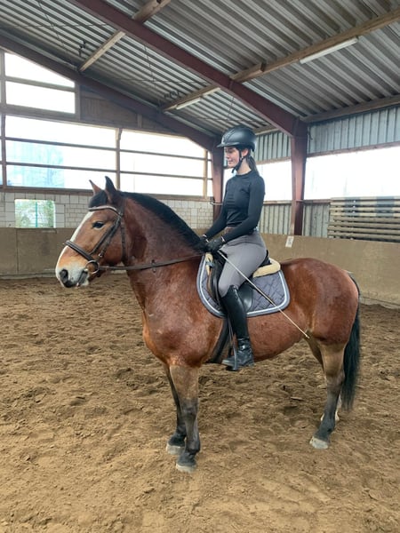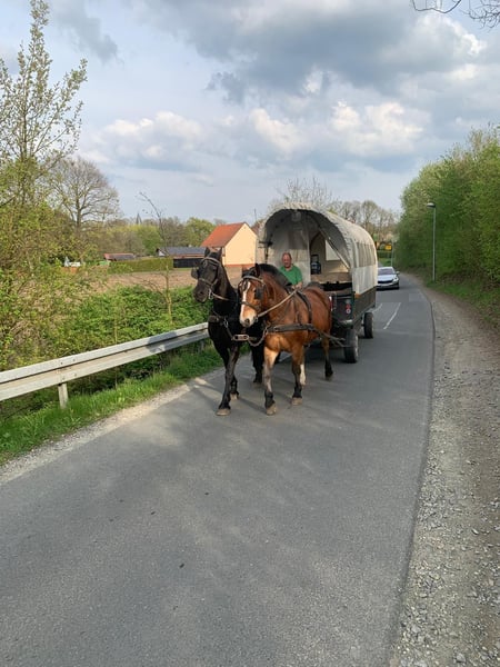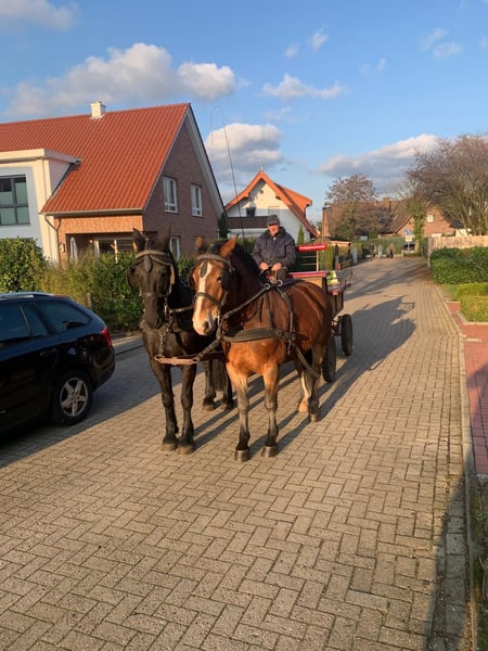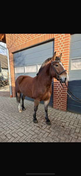 Leider passt dieser schöne Wallach nicht zu unseren Gespannpferden und steht deshalb zum Verkauf. Albert Alt- Oldenburger x Rheinisch Deutsches Kaltblut 22.06.2022 Stk. 1,56 m - angeritten (in allen drei GGA, Videos vorhanden) - 1- und 2- spännig angefahren ( Videos vorhanden) - Schmiedefromm - Verladefromm - Menschenbezogen Er war bisher super lieb bei allem, was wir mit ihm gemacht haben! Die erste Planwagentour mit Personen hat er auch super mitgemacht. Albert ist ein Allrounder, den wir uns sowohl gut als Familienpferd, für den ambitionierten Reiter als auch im Fahrsport Turnier/Freizeit und für entspannte Ausfahrten mit dem Planwagen gut vorstellen können. Auch der Einsatz als Therapiepferd, wäre nach weiterer Ausbildung sicherlich denkbar. Leider hat er das Sommerexem von seiner Mutter geerbt, welches aber gut in den Griff zu bekommen ist. Der Vater wäre vor Ort zu besichtigen. Der Preis steigt bei weiterer Ausbildung. Die weitere Ausbildung kann auch nach dem Kauf bei uns erfolgen. Bei Interesse oder Fragen melden sie sich gerne unter 015225114908 :)