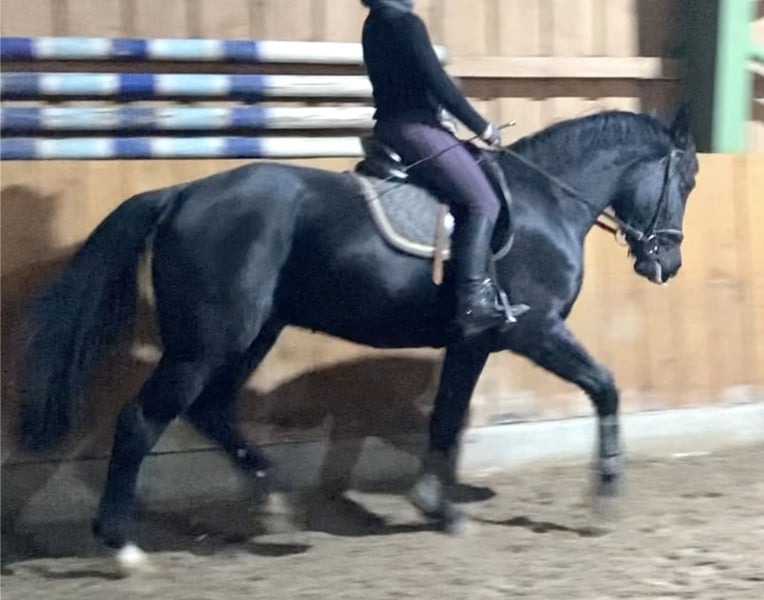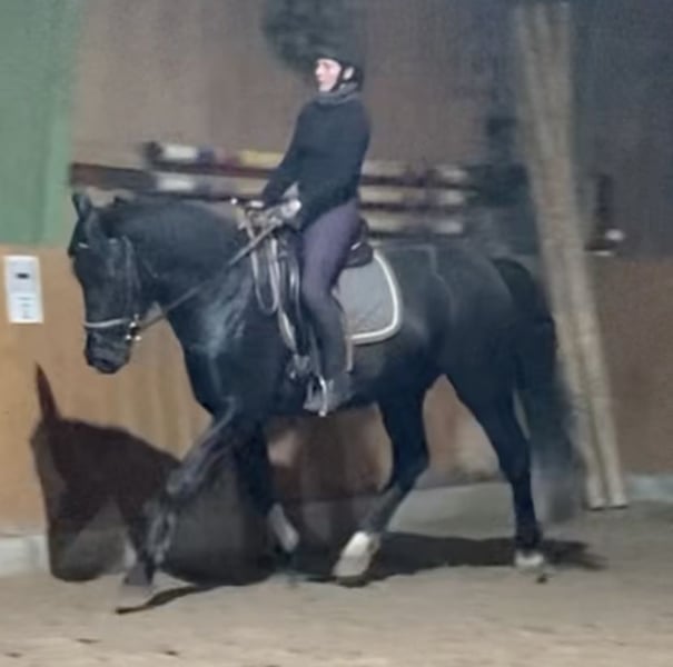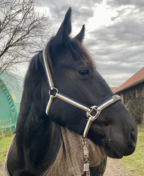 Sales advertisement: For sale is a talented, people-oriented, and easy-to-ride 3-year-old Oldenburg gelding, born in 2022, with a current height of 161 cm – likely to grow further. Pedigree: By Ede out of an Earl mare – top Oldenburg lineage, combining performance, temperament, and rideability. ✨ His character: Uncomplicated, honest & reliable. He impresses with a clear mind, very good social behavior in the herd, and is absolutely well-behaved in all handling. He is farrier-friendly and loading-friendly, can be led, groomed, and saddled without any issues – a very nice guy who wants to please his person. ♂️ Under saddle: The gelding stands out with a solid basic training, showing first solid work under saddle that is light-footed, attentive, and cooperative. His honest nature and natural rideability make him the ideal leisure partner, possibly also for ambitious leisure riders with light sporting ambitions. Special feature: He has a mild laryngeal paralysis (Grade 2), which does not affect him in daily life or under normal load. Typically, horses with this condition show no or only minor performance losses. In practice, this usually poses no problem for leisure sports. ✅ At a glance: Age: 3 years (born in 2022) Breed: Oldenburg Color: Black Height: currently 161 cm (still growing) Pedigree: by Ede out of an Earl mare Temperament: honest, uncomplicated, well-behaved, and people-oriented Handling: farrier-friendly, loading-friendly, friendly, social Health: mild laryngeal paralysis Grade 2 (harmless for leisure use) Directly from the breeder – with the best rearing conditions Conclusion: A still young, but already very mature gelding in character with charm and potential, who will bring much joy to his future person – ideal for riders who value a safe, loyal leisure horse. With good further training, he will be a true partner for life! Location: Braakalnder Hof, 27801 Dötlingen Contact: 01522 8008206 Viewing and trial riding possible by appointment. We look forward to serious inquiries!
