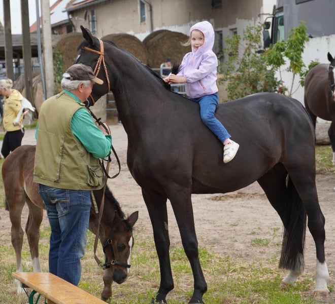 Esra ist seid dem sie Absatzfohlen ist bei uns und ist in der Herde unter Artgenossen groß geworden! Sie selbst prämiertes Fohlen was sie auch weiterzugeben wusste und stellte dieses Jahr 4 j ein Fohlen was auf der Fohlenschau siegte mit Noten in der Bewegung von 9,0. was das Fohlen auf dem Fohlenchampionat nochmals beeindruckend wiederholen konnte. Sie selbst mit erstklassigen GGA ausgestattet, einen super Charakter und immer mit der richtigen Einstellung zur Arbeit! Was man deutlich erkennen konnte wo man mit ihr gearbeitet hat und sie sich problemlos reiten und einspännig Anspannen ließ. Esra ist schmiede und Verladefromm wie auch so frei von irgendwelchen Macken und Angewohnheiten
