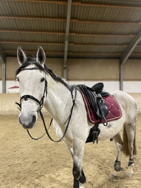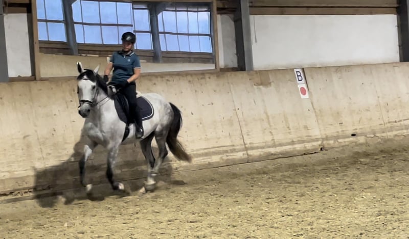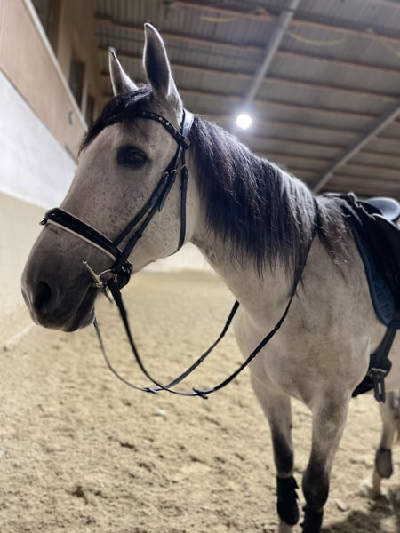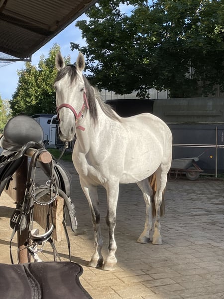 Salinero ist ein super lieber und ehrlicher Wallach, der mit seiner besonderen Farbe und seiner tollen Ausstrahlung sofort ins Auge fällt. Er überzeugt durch eine hervorragende Arbeitseinstellung, Motivation und mit viel Herz. Unter dem Sattel zeigt er sich stets bemüht, alles richtig zu machen. Er ist sehr fein zu reiten, dabei immer brav, benötigt aber einen sicheren und gefühlvollen Reiter. Er ist definitiv ein toller Partner zum losreiten und Spaß haben. Salinero ist super geländesicher, kennt Hunde, Fahrradfahrer etc. - Schimmel mit dunklem Behang - ein absoluter Hingucker - keine Unarten - Herdenverträglich (eher rangniedrig) - regelmäßig entwurmt & Zähne gemacht - Impfungen aktuell (Influenza, Tetanus, Herpes) - Keine schlechten Erfahrungen, ich bin die 1. Besitzerin nach dem Züchter - komplettes Zubehör wird gerne mitgegeben Der Preis ist verhandelbar (Platz vor Preis) Ich gebe ihn nur aufgrund meiner persönlichen Lebenssituation und schwersten Herzens ab. Mir ist wichtig, dass er ein gutes Zuhause bekommt. Er ist definitiv ein Traumpferd und ein absoluter Geheimtipp. Kontaktaufnahme am besten per WhatsApp oder SMS