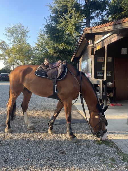 Santa Fe is a 2011-born gelding with an impressive competitive record, having participated in national and international competitions up to 1.40 m. Due to a series of injuries, he is no longer suitable for sporting activities. For his well-being, he is best suited for a peaceful life, enjoying light walks at a walk and turnout management in a paddock. He remains an energetic, sensitive, and very present horse: initially, he may seem a bit cautious with unfamiliar people, but once trust is established, he becomes extremely generous and affectionate. Santa Fe is looking for a person who desires a companion horse to share moments of serenity, without any sporting expectations. Ideal for: – amateur riders – peaceful walks – paddock life / companionship – a stable and respectful environment The price reflects his sporting past and the desire to find him a permanent, suitable home, although it is negotiable.