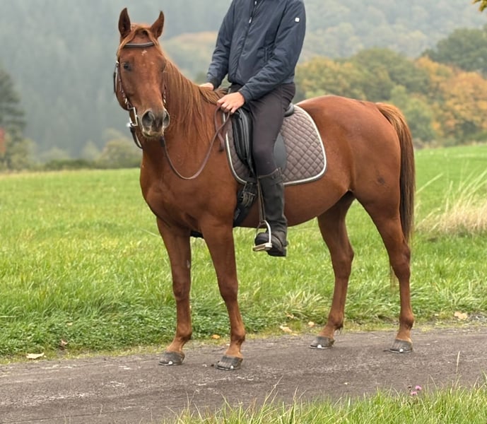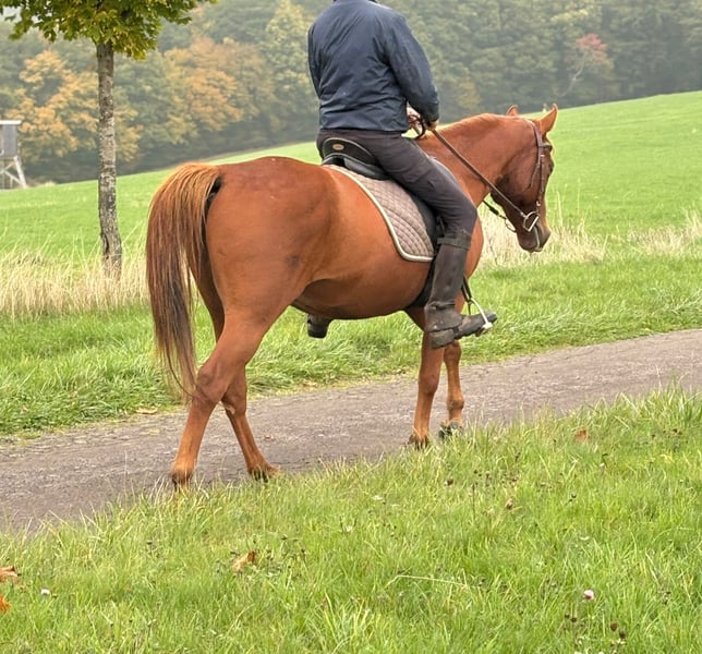 Quarter Horse Mix Gelding – 4 years old – 152 cm – cool, well-behaved & versatile For sale is a truly lovable Quarter Horse mix gelding. He is 4 years old, approximately 152 cm tall, and already impresses with a great character: friendly, relaxed, and pleasant to handle. Under saddle, he shows himself to be very rideable, light to ride, and very comfortable. He is eager to learn, reliable, and goes calmly both alone and in a group out on the trails. Even in unfamiliar surroundings, he remains calm and confident. Despite his young age, he already confidently takes on the role of lead horse. In the riding arena, he is motivated, attentive, and participates reliably. Particularly practical: he is accustomed to both the English saddle and the Western saddle, and behaves well with both. The gelding has an equine passport without pedigree verification, which is why he is listed as a Quarter Mix. Currently, he lives in a paddock with a mixed herd and shows himself to be absolutely social there. He gets along with all horses and is also used to Shetlands. This gelding has the best prerequisites to become a loyal partner for many years – whether for leisure, trail riding, or Western riding, or simply as a four-legged friend to love. 👉 Please note: For riding, trial riding, or any other testing of the horse, we charge a fee of €30 for the well-being of the horse. If purchased on the same day, this amount will of course be deducted from the purchase price.