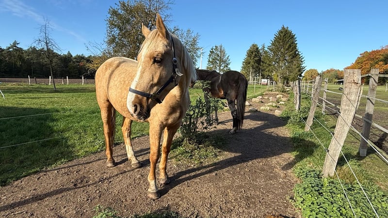 Key Data: Name: Cody Age: 3 years Training Level: Unridden Temperament: Cuddly and age-appropriate, ranging from very well-behaved to somewhat cautious; likely to have some playful moments but without any naughtiness – just a young horse with a good heart. Cody already knows quite a lot and is easy to handle. However, he is only 3 years old, so the main work is still ahead. He is familiar with light round pen work and learns quickly, showing great effort and sensitivity. He will undoubtedly become a wonderful riding horse for anyone who enjoys riding – once someone shows him the way. Please no beginners. He reacts very delicately and calmly to signals, which should be maintained. Experience with young horses or at least a knowledgeable trainer is recommended to keep him healthy on his way to becoming a riding horse. Dogs, children, tanks, tractors… all are fine for him. Loading, however, still presents a challenge for Cody. We are working on it, and he is improving. If you prefer to do everything yourself and are looking for a horse to develop on your own, Cody might be the perfect match. We have already laid the groundwork (leading, round pen work, some weight on the saddle). No box stall housing, or at most only overnight (not because he couldn’t handle it, but because we don’t wish that for him), and a harmonious herd (Cody is a lower-ranking horse) with enough feeding places. Everything else is possible with him. Cody quickly builds trust with his handler, which makes the upcoming training as a riding horse easier. We want to ensure that this trust is not exploited. His musculature should be further developed before he starts working as a riding horse. We are looking for someone who is aware of this and for whom he can be the heart horse. We do not have sales videos. Anyone interested in Cody is welcome to meet him in person. Likewise, we would love to get to know his new owner personally. He is sound and trotting quietly.