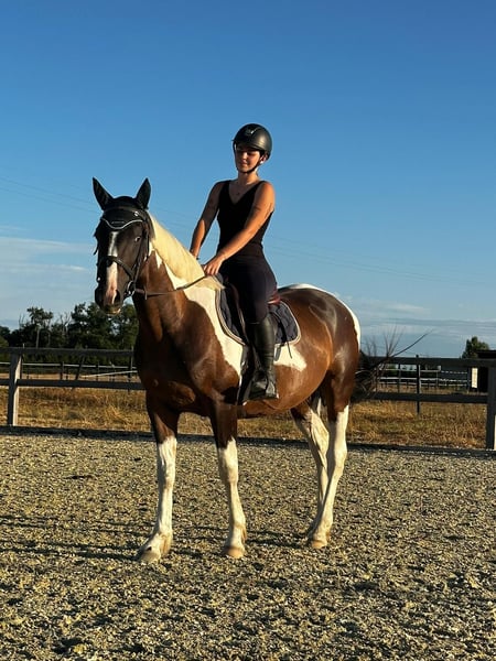 Sport horse with an original coat color. Very gentle, easy to handle, and a pleasure to ride. His grandsire has won at the 160 CSIO 5* level. He has begun work over jumps and is ready to navigate a small course. All the potential lies ahead for this young and friendly 3-year-old horse. Not at all picky, he is easy to handle and very enjoyable to ride. He is accustomed to both pasture life and stable life. The veterinary check has been completed; he is in excellent health with clear radiographs!