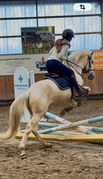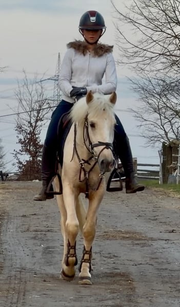Krimi ist ein junger braver Wallach, der gerade angeritten ist und seine ersten Sprünge unter dem Sattel macht. Er ist ganz unkompliziert im handling und lernt schnell. Er ist barhuf und steht tagsüber in der Gruppe draußen.