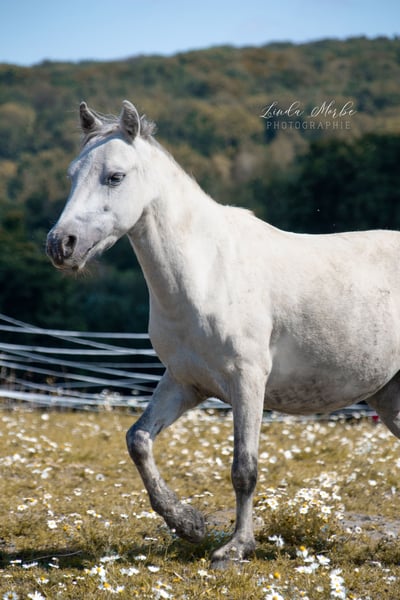 Archie war eigentlich für unsere Reitschule gedacht. Wir haben in vor 4 Jahren aus Ungarn importiert. Aber es hat sich gezeigt, dass er sehr gerne ein Ein-Personen-Pony wäre. Wir möchten ihm das gerne ermöglichen. Archie wurde von uns longiert und die Kinder sind geführt auf ihm geritten. Er ist lieb und anhänglich, aber am Anfang eher skeptisch und auch mal unkooperativ. Wenn man eine Beziehung aufgebaut hat, ist er ein Schatz.