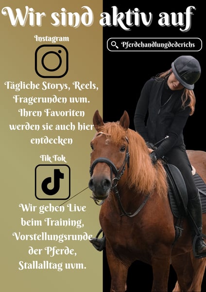 Baron ist ein 7 Jähriger Wallach ca. 155 cm *Baron* Traumpferdchen- wunderschön und super cool. Auf ihm hat man nur ein sicheres und gutes Gefühl, daher auch für Angstreiter, Kinder und Therapie gut geeignet. Fremde Umgebungen, schneller Verkehr, Planen, Gelassenheitstraining und auch Turnübungen auf ihm machen ihm nichts aus. Baron ist wunderschön hat eine tolle und kräftige Statur ohne klobig zu sein. Er ist ganz ruhig, darum sind auch unruhige Beine usw. kein Problem für ihn. Er ist einfach ein Traumpferdchen. Die Chance auf so ein Pferd sollte man nicht verpassen. Pferdehandlung Dederichs – Ihr Partner für den Pferdekauf Kontakt & Erreichbarkeit: Anfragen bitte ausschließlich telefonisch unter 0173/9792139 Montag – Freitag: 09:00 – 18:00 Uhr Samstag: 09:00 – 15:00 Uhr Sonntag: Ruhetag Folgen Sie uns auf Social Media! Erleben Sie unseren Alltag mit den Verkaufspferden auf Instagram, TikTok & Facebook unter Pferdehandlung Dederichs Rabatt: Bei sofortiger Mitnahme Ihres neuen Traumpferdes erhalten Sie zwischen 5 %– 10 % Rabatt Probereiten & Vorführen: • Probereiten: 30 € pro Pferd (max. 2 Reiter), Betrag wird beim Kauf angerechnet • Feiertage: Proberitt 50 € • Vorführung durch unsere Bereiter: 25 € pro Pferd (Vorreiten, Bodenarbeit etc.) Ankaufsuntersuchung & Transport: • Viele unserer Pferde besitzen bereits eine AKU • Sie können selbstverständlich Ihren eigenen Tierarzt mitbringen • Gerne organisieren wir eine Untersuchung • Wir unterstützen Sie auch gerne beim Transport ins neue Zuhause Weitere Verkaufspferde: In unserem Stall stehen weitere Verkaufspferde, die noch nicht online sind. Falls Ihr Traumpferd noch nicht dabei ist, zögern Sie nicht, uns zu kontaktieren. Wichtige Hinweise: • Stockmaß-Angaben sind geschätzt und nicht exakt nachgemessen • Alle Beschreibungen sind subjektive Einschätzungen des Verkäufers und keine zugesicherten Eigenschaften Weitere Informationen finden Sie unter: www.Pferdehandlung-Dederichs.de