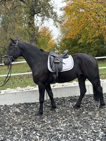 Friendly 2018-born black gelding with a height of 15.8 hh. The horse belongs to the miscellaneous breeds and is ideal for leisure riding. Well-trained, calm in handling, and suitable for both experienced riders and beginners looking for a reliable leisure horse. Please feel free to contact me for more information or to arrange a viewing.
