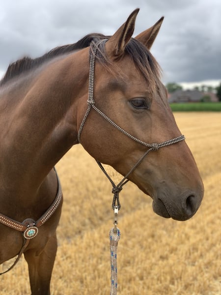 Lernen Sie Carlito kennen, der ein vielseitiger Freizeitpartner ist. Seine Mutter ist eine Soanierstute und sein Vater ein Cornet Obolensky Nachkomme. Zum Springen eignet er sich allerdings nicht, obwohl er am Freispringen auch Spaß hatte. Er wurde sowohl Western- als auch Englisch geritten. Man kann alleine mit ihm ins Gelände, dort zeigt er sich unerschrocken. Zudem haben wir mit ihm berittenes Bogenschießen angefangen. Auch da zeigt er sich mutig und willig. Röntgenaufnahmen von 2023 liegen vor. Auch weitere Videoaufnahmen.