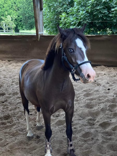 Poney sportif noir avec deux yeux bleus, taille B (environ 130 cm). A participé à des compétitions avec une enfant de 8 ans. Très belles allures, beaucoup de respect en saut et suffisamment de sang-froid. Prêt pour de nouveaux défis. Convient également pour le concours complet (CCE). Potentiel de saut : 1,00 m – 1,05 m. Les offres sont ouvertes jusqu'à lundi soir sur : https://esha.horse/Auctions/Item/5716