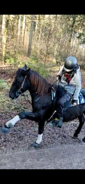 Ce joli et sincère hongre (10 ans, taille 143 cm) se trouve en Allemagne, dans la région de Küssaberg. Ce n’est pas un poney pour débutants, car il aime tester ses limites avec les personnes peu confiantes en restant simplement immobile ou en essayant de changer de direction. Cependant, il ne devient jamais difficile ou ne donne de coups de pied lorsque je le monte. Il lui faut quelqu’un qui sait gérer ce comportement sans se montrer effrayé. En traitant avec justesse et fermeté, on obtient un partenaire loyal et obéissant, qui adore travailler et réfléchir. C’est un poney vraiment intelligent, très bien monté par mes entraîneuses. Il se déplace agréablement dans toutes les trois allures de base, adore le travail en liberté et est souvent travaillé au sol, car je ne suis pas encore très expérimentée en équitation. Il aime être mis au défi. Son précédent propriétaire l’utilisait occasionnellement en cours d’équitation avec des enfants. Malheureusement, nous ne sommes pas faits pour nous, car je ne peux pas lui donner la sécurité dont il a besoin, et il en profite pour en tirer avantage. Il a besoin de variété pour rester équilibré et heureux. Il est pieds nus, en bonne santé, robuste, régulièrement vacciné – un vrai cheval de loisir et de randonnée, qui n’a pas peur du terrain, seul ou en groupe (sauf pour les troncs d’arbres, où il a besoin d’un peu de temps). Les voitures, les vaches, les tracteurs, tout ce qui effraie la plupart des chevaux, ne l’impressionne pas, il a donc un bon tempérament :-). Ses petites manies : il met les oreilles en arrière lorsqu’il ne connaît pas les personnes. Il n’est pas dangereux ni méchant, simplement méfiant au début. Il réagit très stressé en box, un paddock avec un petit groupe de hongres lui conviendrait parfaitement, car il s’y sent bien. Dans de grands groupes ou groupes mixtes (actuellement 14 chevaux), il se sent mal à l’aise et défend les juments. Ce que nous recherchons : Une personne expérimentée et patiente, prête à relever ce défi. Quelqu’un qui le travaille quotidiennement au sol et monté. Un paddock avec petit groupe de hongres, avec un traitement juste et respectueux du cheval. PRIORITÉ AU PRIX – une option de paiement en deux fois ou un acompte de la moitié du prix d’achat est envisageable. Équipement : Selle d’équitation d’occasion de marque Islanders, en parfait état, comprise dans le prix. Une selle western neuve sans arbre, également comprise. Tout le matériel (valeur totale d’environ 1600 €) peut être repris gratuitement. Intéressé ? Merci d’envoyer un message court et sincère, en expliquant pourquoi vous êtes la personne idéale pour lui. Je peux également envoyer d’autres photos ou vidéos via WhatsApp.