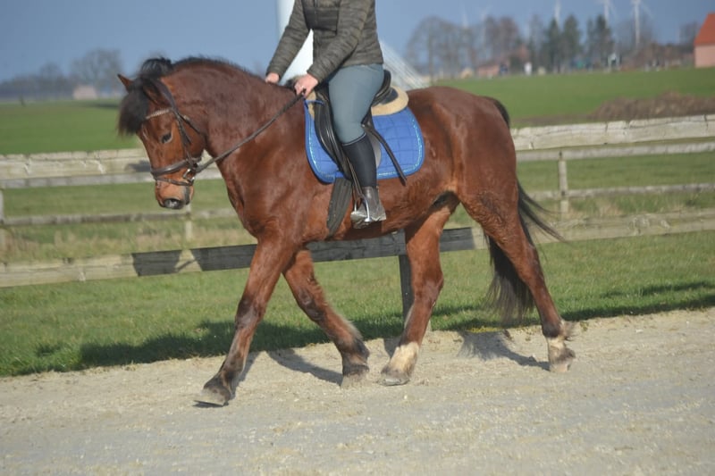 Lustiger 8-jähriger Rüde mit einer Schulterhöhe von 1,51 m. Er ist brav und ruhig im Umgang, steht geduldig beim Putzen und Aufsatteln. Er ist brav zu reiten und wird dressurmäßig ausgebildet. Aufgrund seiner etwas kräftigeren Statur ist er auch für einen kleineren Erwachsenen gut geeignet. Für weitere Informationen oder ein Video einfach WhatsApp schicken an 0031645719488.