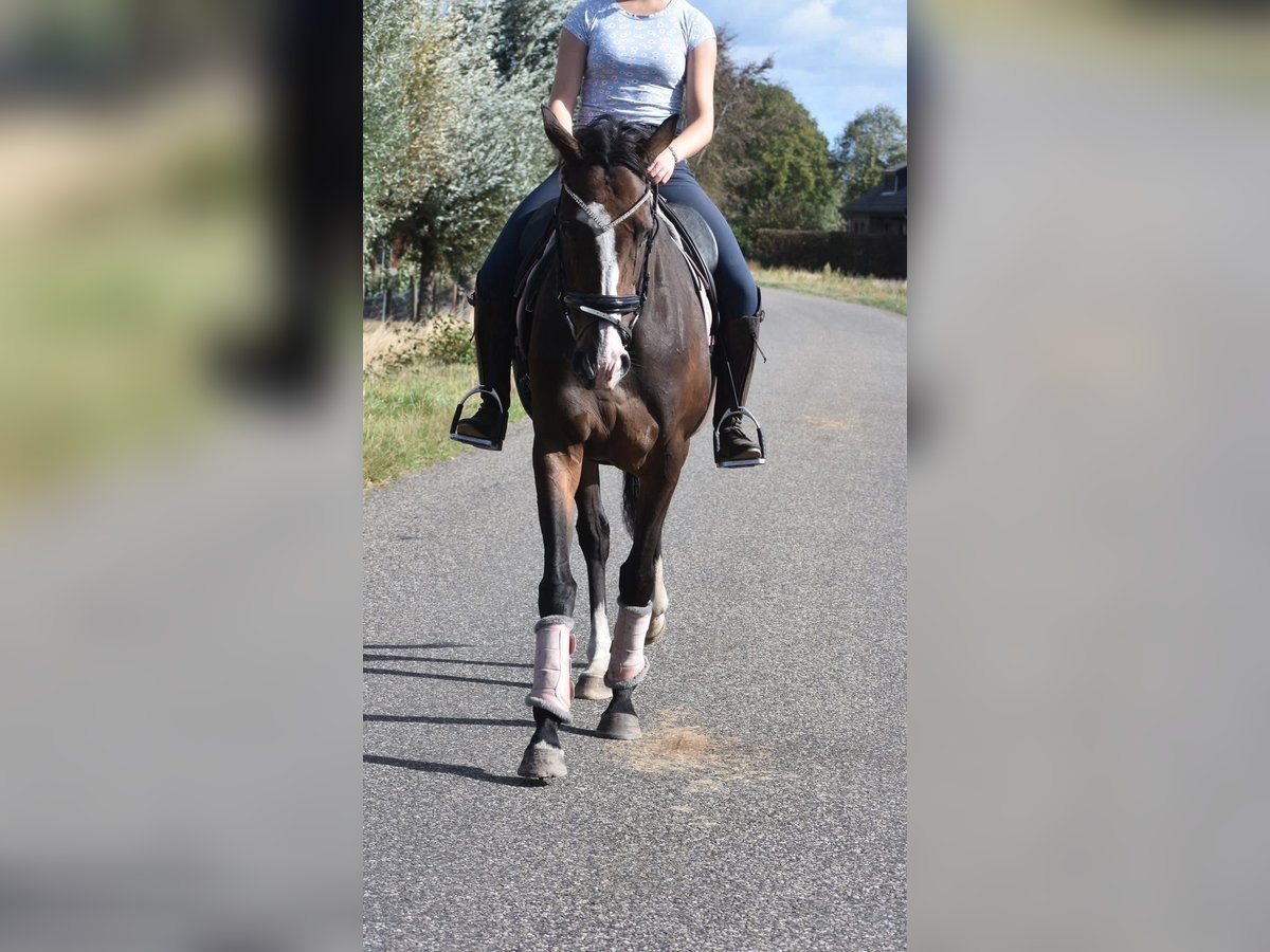 Eyecatcher: superbrave 9 jarige rijpaardmerrie Paddy is een 9 jarige dame van ca. 1.62m hoog, met een afstamming van Leading Light x Caoba by Hernando ( FR) Ze heeft een chique, maar toch degelijke bouw met mooie lange benen en laat zich hier fijn rijden. Wij konden door omstandigheden een lange tijd haar niet rijden en konden zó weer op haar wegrijden, ze is hier superbraaf. Daarbij heeft ze een zacht mondje en reageert ze fijn op de hulpen. Een zware hand is bij haar absoluut niet nodig maar ze is hier ook niet te gevoelig of te rillerig. Paddy is hier verkeersmak, gezond en vrij van gebreken. Voor de fokkerij is ze eveneens zeer interessant! Verder is ze ontzettend sociaal in de groep, de omgang en op stal. Is onlangs door de tandarts behandeld, in bezit van een recent rapport. Prijs € 6450,- incl merkzadel en dekje