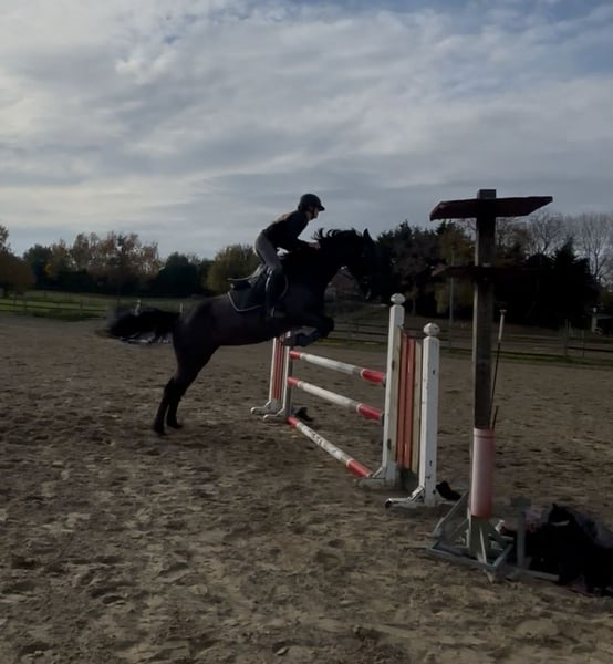 Hermosa y versátil yegua, nacida en 2014, de llamativa coloración negra y una altura de 1,56 m. Esta encantadora yegua de salto combina fuerza y flexibilidad, lo que la hace ideal tanto para jinetes aficionados como profesionales que buscan una compañera confiable para saltos y trabajo de allround. Está bien montada y posee un carácter amable y dispuesto al trabajo. Su estructura sólida y técnica natural de salto la convierten en una compañera con la que es un placer trabajar, ya seas principiante o tengas experiencia en la disciplina de salto. Esta yegua ofrece mucho potencial para el futuro y está lista para acompañar a su nuevo propietario hacia logros destacados en el salto. ¡Muy recomendable para quienes buscan una compañera de salto confiable y elegante!