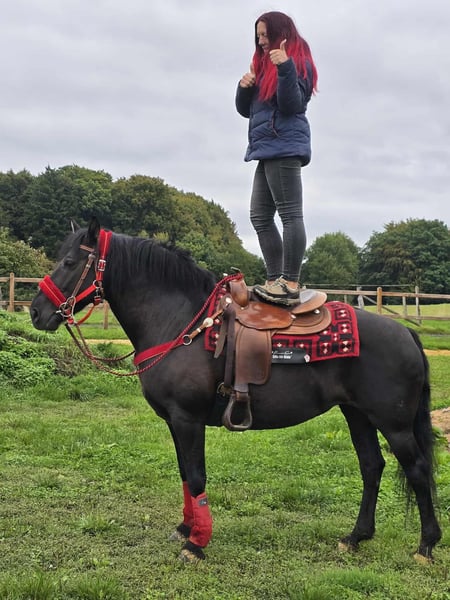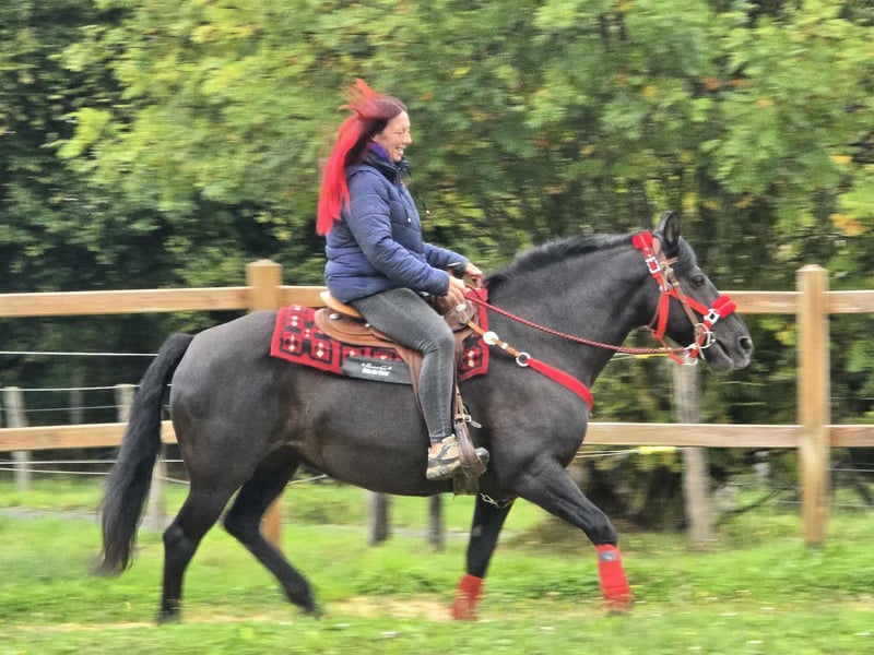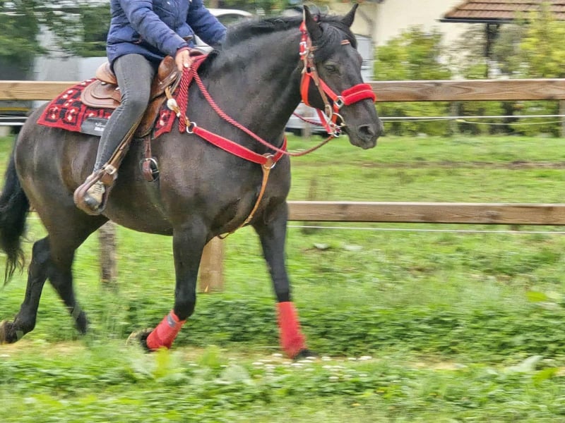 Beautiful, affectionate leisure - trail riding horse for sale! Born: 2014 Height: approx. 1.53 m Price: €6,800 NORA is a charming, well-built mare with a gentle nature and a balanced temperament. She impresses with her calm demeanor and an open, people-oriented character – ideal for anyone looking for a reliable leisure horse with a steady mind. Whether in the field, in the arena, or in daily handling: NORA always presents herself as friendly & cool. Her calmness and sure-footedness make her also ideal for trail riding. ✅ What NORA offers: Microchip and E-pass - veterinary check • Suitable for therapy • Very calm, fearless, and clear-headed • Well-behaved in daily handling (grooming, leading, saddling, etc.) • Good conformation • Current purchase examination available! • Great for leisure, family – and for trail riding – has all the prerequisites to be a loyal leisure partner Our horses – lovingly cared for: • Regularly dewormed • Checked and maintained by the farrier • Osteopathically checked if needed In our farm shop: used western saddles, bridles, halters, and much more. We are happy to organize accessories & transport for you at a reasonable price! Our service for you: So you can decide with a good feeling: • 3 months exchange right (contractually stipulated) • Trial ride possible: → €35 for the first horse, €25 for each additional one – credited if purchased on the same day • Spend time with the horse, riding, walking, or being ridden • €100 discount for immediate pickup or transport on the same day • Personal accompaniment & honest advice during the trial ride Interested? Then we look forward to your call: