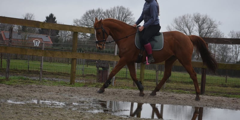 Prachtige, beginnersproove , ervaren rijpaardmerrie Dana is werkelijk een plaatje. Ze heeft een prachtige goudvoskleur , een mooie bouw en aansprekend hoofdje. Haar vorige baasjes reden voornamlijk buiten met haar. Toch reed ze hier vanaf het begin super netjes in de bak. Ze is geboren in 2007 maar ziet er super uit, en je zou haar deze leeftijd beslist niet geven. Maar de ervaring heeft ze, om een beginner veilig op pad te helpen en /of iemand die gewoon een makkelijk paard op prijs stelt. Dana is ca 160 m hoog. Ze heeft een goede stamboom van Dow Jones Courcel ( App) X Shardari x Little Credit. Kan dus best dat er een stippel uit komt als je nog een veulentje bij haar krijgt. Wist je dat paarden tot op hoge leeftijd een veulen kunnen krijgen? Ze hebben geen menopauze zoals wij mensen. In ieder geval is Dana een perfecte vriendin. Lief, sociaal, makkelijk, trailer en verkeersmak bij ons en voorheen. 3950,- incl. merkzadel en compleet hoofdstel