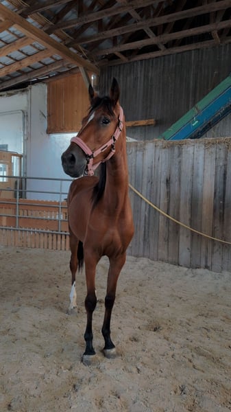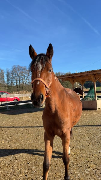 Jungstute mit viel potential. Leider muss ich sie aus Privaten Gründen abgeben. Dabei geht aber immer Platz vor Preis da ich nichts überstürzen will. Sie ist kein Anfänger Pferd da sie mit ihren 2 Jahren noch sehr grün hinter den Ohren ist. Ich wünsche mir für sie einen Platz, wo sie viel mit anderen Pferden draußen stehen kann und einfach noch Baby sein darf aber sie auch etwas gefordert wird. Sie freut sich immer wenn man kommt und mag sofort immer Kuscheln und Aufmerksamkeit. Die Kleine ist total aufgeschlossen gegenüber dem Menschen und freut sich immer neue Sachen zu entdecken und kennen zu lernen. Deswegen kennt sie schon eine Stange über dem Rücken zu haben und alle möglichen schrecktrainings Gegenstände. Aktuell kennt sie auch schon leichte Anfänge von longieren und natürlich Spazierengehen.