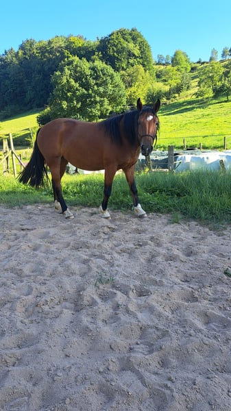 Hübsche kleine Stute aus 04/2023, Kaltblutmix. Sie ist aufgewachsen im Herdenverbund und lebt aktuell in einer kleinen gemischten Herde. Die Stute ist gesund, geimpft, regelmäßig entwurmt und wird regelmäßig dem Hufschmied vorgestellt. Sie kennt Bodenarbeit und Gelände als Handpferd. Das Stm. ist zur Zeit ca. 1,40m.