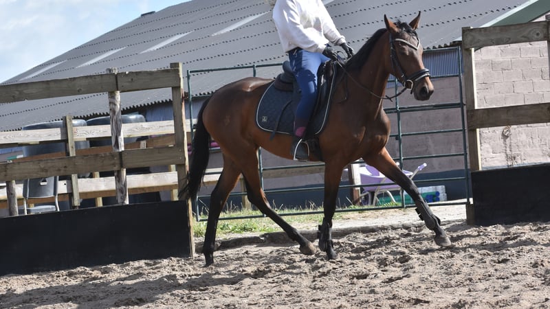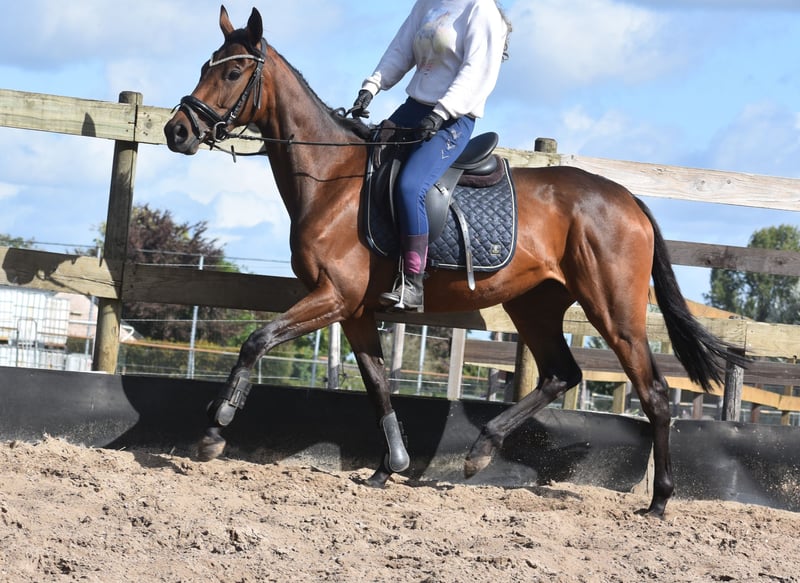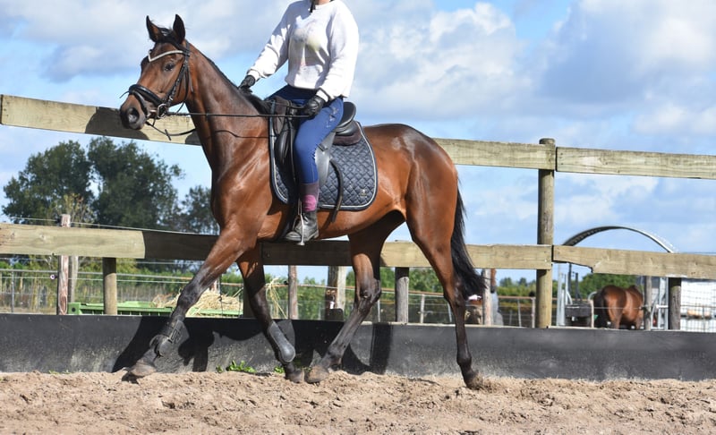 Hier is Yvy, een prachtige jonge dame van 3,5 jaar oud met een stokmaat van ca. 1.55m. Haar afstamming is Doyen x Little Nugget. Ze heeft een chique, elegante bouw en weet zeker de aandacht te trekken zodra je de stallen binnenloopt. Ze heeft een ontzettend lief en eerlijk voorkomen. Ivy heeft 3 fantastische gangen en is daarmee geschikt voor meerdere takken van de sport. Ondanks haar jonge leeftijd pakt Yvy het werk hier heel goed op. Ze werkt graag samen met haar ruiter en doet haar best om alles zo goed mogelijk te begrijpen. Momenteel wordt ze bij ons dressuurmatig en recreatief doorgereden en laat ze daarbij een fijne instelling en veel potentie zien. Ze is geheel vrij van gebreken. In bezit van zeer recent keuringsrapport inclusief bloedafname. Prijs 3950- incl. merkzadel en dekje
