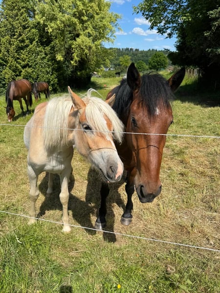 Wir geben unsere brave 4 jährige Ponystute ab. Sie ist bei uns geboren und alters- und jungpferdegerecht das ganze Jahr auf großzügigen Koppeln aufgewachsen. Momentan steht sie in einer gemischten Herde (2 Jährlinge, eine 2 Jährige und zwei 3 Jährige). Sie ist momentan eher ranghoch, stand aber auch schon mit älteren Pferden zusammen und weiß sich da entsprechend unterzuordnen. Die Mutter ist ein ungarisches Pony, der Vater leider unbekannt. Sie besitzt einen Pass, ist regelmäßig geimpft und entwurmt. Sie ist absolut Schmiede- und Verladefromm und kennt das Fohlen ABC. Letzten Sommer wurde sie schonend an den Sattel und Gurt gewöhnt. Danach haben wir ihr die Chance gegeben sich körperlich noch voll zu entwickeln. Reitergewicht kennt sie bis jetzt nicht, sollte aber kein Problem darstellen. Bei Bedarf kann sie je nach Entfernung auch gebracht werden. Bei Interesse beantworte ich gerne alle Fragen.