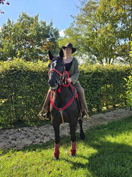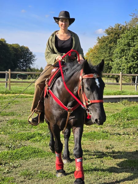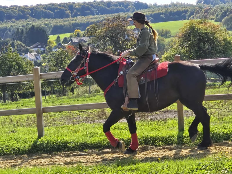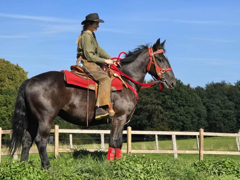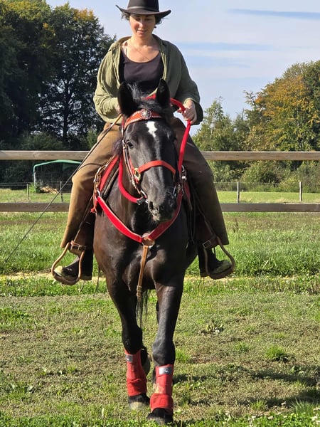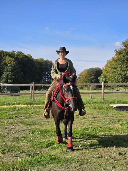 Jument noire – sociable et conviviale Âge : 3,5 ans Taille : environ 1,53 m Prix : 6500,- Vétérinaire disponible Elle est : – douce et fiable au quotidien ainsi que sous la selle – très attachée aux humains et câline – équilibrée et calme malgré son jeune âge – un excellent cheval pour toute la famille – avec son caractère, également intéressante pour le domaine de l'équitation thérapeutique Parfait pour : Familles, cavaliers de loisir ou établissements à la recherche d'un cheval amical et coopératif, qui aime le contact humain. Nos chevaux : – régulièrement vermifugés – suivis par le maréchal-ferrant et l'ostéopathe Magasin à la ferme : Selles western, brides, accessoires Transport et accessoires organisés à prix réduit sur demande Notre service : ✅ Droit de retour de 3 mois ✅ Essai : 35 €, chaque cheval supplémentaire 25 € (déduit lors de l'achat le même jour) ✅ Remise immédiate de 100 € pour enlèvement/transport le même jour ✅ Conseil personnel et honnête Pour les demandes, veuillez appeler uniquement : 0171 – 4001968 Disponible tous les jours de 8h à 20h ⚠️ Pas d'e-mail ou WhatsApp ⚠️ Toutes les informations sans garantie