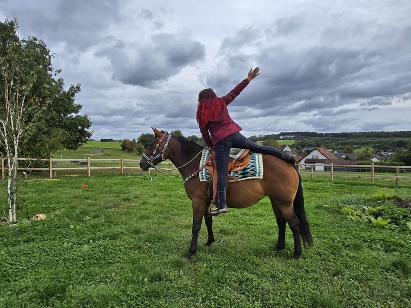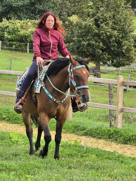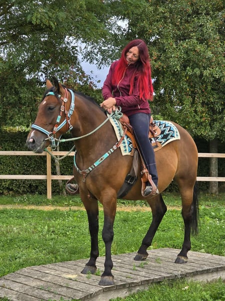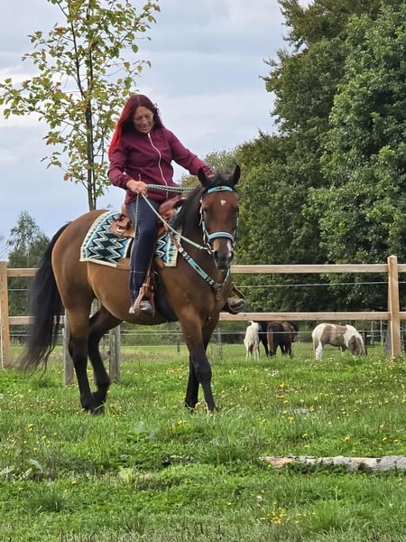 Wunderschöne, liebe Freizeit - Wanderreitpferd zu verkaufen! Geboren: 2021 Stockmaß: ca. 1,55 m Preis: 6.500 € CECILIA ist eine charmante, gut gebaute Stute mit sanftem Wesen und einer ausgeglichenen Art. Sie überzeugt mit ihrem ruhigen Temperament und einem aufgeschlossenen, menschenbezogenen Charakter – ideal für alle, die sich ein zuverlässiges Freizeitpferd mit klaren Nerven wünschen. Ob im Gelände, auf dem Platz oder im täglichen Umgang: CECILIA zeigt sich stets freundlich & Cool. Durch ihre Gelassenheit und Trittsicherheit ist sie auch ideal fürs Wanderreiten geeignet. ✅ Das bringt CESILIA mit: Microchip und E-Paß -AKU • Schonend angeritten, kennt Sattel und Reitergewicht • Für ihr Alter sehr ruhig, unerschrocken und klar im Kopf • Brav im täglichen Umgang (Putzen, Führen, Satteln etc.) • Guter Körperbau • Aktuelle Ankaufsuntersuchung vorhanden! • Toll geeignet für Freizeit, Familie – und fürs Wanderreiten Bitte beachten: CECILIA ist noch jung und sollte weiter gefördert werden – bringt aber alle Voraussetzungen mit, um ein treuer Freizeitpartner zu werden. Unsere Pferde – liebevoll betreut: • Regelmäßig entwurmt • Vom Hufschmied kontrolliert und gepflegt • Bei Bedarf osteopathisch durchgecheckt In unserem Hofladen: gebrauchte Westernsättel, Trensen, Halfter u. v. m. Zubehör & Transport organisieren wir gern günstig für Sie! Unser Service für Sie: Damit Sie mit einem guten Gefühl entscheiden können: • 3 Monate Umtauschrecht (vertraglich festgelegt) • Proberitt möglich: → 35 € für das erste Pferd, 25 € für jedes weitere – bei Kauf am selben Tag angerechnet • Zeit mit dem Pferd verbringen, Reiten, Spazieren oder sich vorreiten lassen • 100 € Nachlass bei Sofortabholung oder Transport am selben Tag • Persönliche Begleitung & ehrliche Beratung beim Proberitt Interesse? Dann freuen wir uns auf Ihren Anruf: