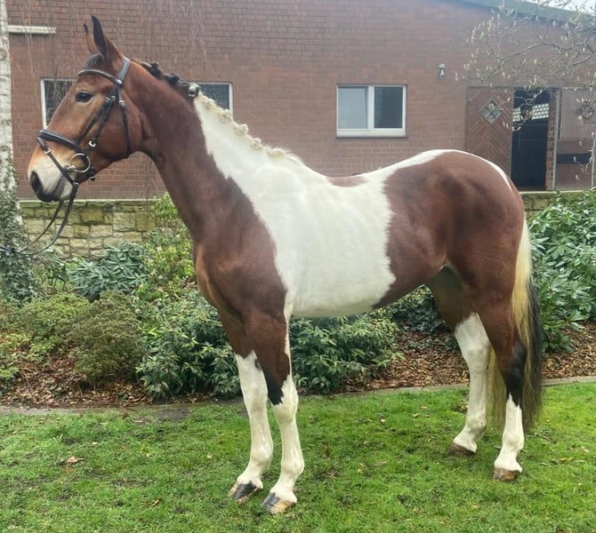 This young mare is currently working solidly in all three gaits under saddle and always strives to do her best. She is a horse that is still growing and developing physically and is at the beginning of her training. Therefore, she is currently offered at a favorable price, which will increase as her training progresses. If you are interested or have any further questions about the horse, please feel free to call me (please no WhatsApp messages; I can call you back if needed). Phone: 0171 7718174