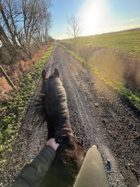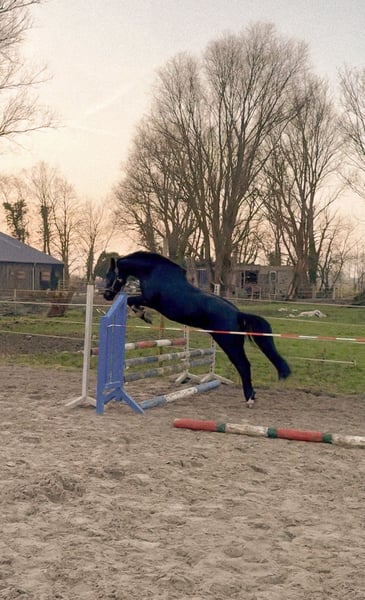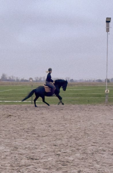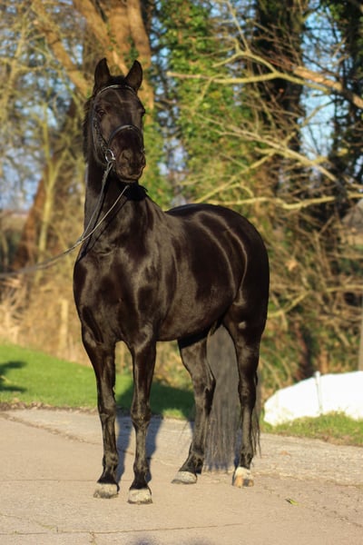 For sale is a 6-year-old mare, well-trained for her age and currently in training. She is sensitive to aids, eager to work, and motivated. She is also familiar with trail riding and hacking out. She was previously ridden for a long time by a young girl. The mare has a good temperament and needs to be challenged and engaged, making her unsuitable for small children and inexperienced riders. She could be a good fit for ambitious riders and shows good scope in free jumping. Her pedigree is unknown. Lower in the pecking order, she is farrier- and loading-friendly, regularly dewormed, with no known health issues. Stabling: kept in a box at night, with turnout in paddock or pasture during the day. The open stable is familiar to her.
