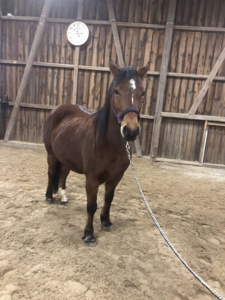Zum Verkauf steht meine hübsche braune Trakehner-Mix Stute Leika. Sie ist 7 Jahre alt, ca. 1,44 m groß und überzeugt durch ihren ruhigen Charakter sowie ihrer Freude an Bewegung. Leika ist eine menschenbezogene und freundliche Stute, die sich besonders gut für den Freizeitbereich eignet. Sie ist lieb im Umgang und genießt gemeinsame Aktivitäten mit ihrem Menschen. Gesundheit: Bei einer Röntgenuntersuchung der Wirbelsäule wurden Engstellen zwischen den Wirbeln im Lendenwirbelbereich festgestellt. Daher ist sie nur eingeschränkt reitbar. Ausbildung & Einsatzmöglichkeiten: - angeritten - trägt einen Reiter + Sattel bis 50 kg - sehr gut geeignet für Bodenarbeit und Spaziergänge - liebt es, geputzt zu werden - könnte zum Kutschefahren ausgebildet werden - auch als Handpferd vorstellbar - ebenfalls gut geeignet als Beistellpferd Haltung & Pflege: - kennt Offenstall und Box - kennt im Sommer 24/7 Weidegang - barhuf - geimpft und entwurmt - Zähne gemacht 08.25 Leika ist eine tolle Begleiterin für ihren Menschen, die ein ruhiges, freundliches Pferd für Freizeit und Bodenarbeit suchen. Bei ehrlichem Interesse gerne melden.