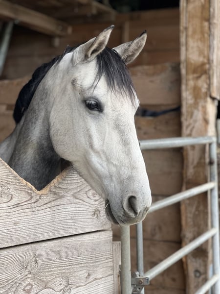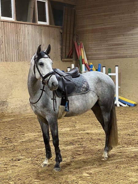 8-jährige Ponystute (Schimmel) – Spanisches Reitpony – 1,48m Stockmaß Zum Verkauf steht meine 8-jährige Schimmel-Ponystute Rondena. Sie wird als Beisteller abgegeben, da eine Diagnose vorliegt. Aktuell befindet sie sich im Heilungsprozess. Nach vorsichtigem Antrainieren kann Reiten eingeschränkt möglich sein. Springen wird aufgrund der Diagnose dauerhaft nicht mehr möglich sein. Sie besitzt ein charakterstarkes, aufmerksames Wesen und ist stets wach im Kopf. Rondena ist nicht für Anfänger geeignet. Sie wurde bei mir turniermäßig im Springen geritten und zeigte sich auswärts immer sehr brav und umgänglich. Transporte stellen für sie kein Problem dar. Sie ist verlade- und hufschmiedfromm, aktuell barhuf. - Barhuf - Verladefrom - Regelmäßig geimpft und entwurmt - Kann mit Equipment abgegeben werden Ein liebevolles Zuhause mit realistischen Erwartungen ist mir sehr wichtig. Weitere Informationen, Befunde und Details gerne im persönlichen Gespräch.