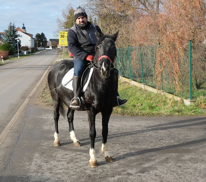 Sehr schöne und durch ihre 4 weißen Beine auffällig gezeichnete Stute. Maja ist geritten auf dem Platz,Halle und bestens im Gelände. Sie ist unkompliziert und einfach zu händeln. Mit ihrem kräftigen Körperbau ist sie auch für größere Reiter geeignet. Ein optimales Wiedereinsteigerpferd, Pferd für Kinder und ältere Leute! Weiterhin ist sie einspännig gefahren. Freizeit-Western-Geländereiten,fahren,Reitschule 8 Jahre, 148cm Bei Interesse bitte anrufen, keine Mail! Für eventuell auftretende Fehler in der Beschreibung gilt keine Gewähr! Tel.: 0173-3843407 Da es sich um ein lebendes Tier handelt, sind dies subjektive Eindrücke des Anbieters und keine zugesicherten Eigenschaften des Tieres! Ständig schöne Fahr-u.Freizeitpferdesowie neue Kutschen verschiedener Modelle preiswert im Angebot. Anschrift Stall: 99628 Buttstädt, Oberwendenstraße 39