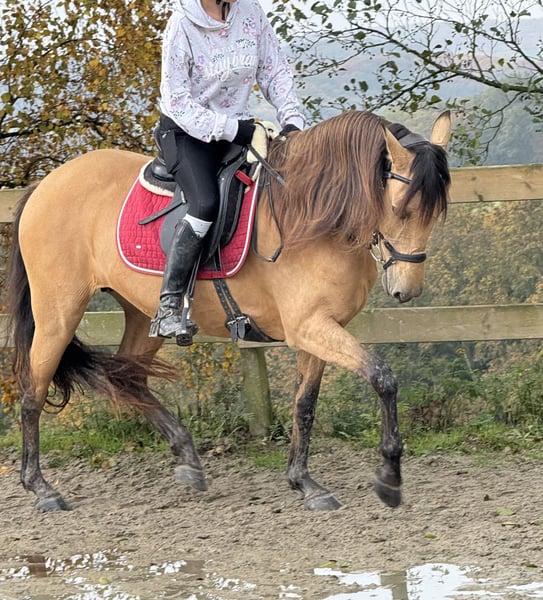 Mit wirklich schwerem Herzen suche ich für meine wunderschöne Spanierstute ein neues Zuhause. Sie ist ein sensibles, feines Pferdchen, das zunächst etwas Zeit braucht, um Vertrauen zu fassen, hat sie jedoch erst einmal ihren Menschen gefunden, geht sie für ihn durchs Feuer. ❤️ Sie ist absolut geländesicher, sie liebt es regelrecht, ob lange ausritte, spaziergänge oder im Wasser spielen, bei allem ist Sie stets aufmerksam, nervenstark und absolut unerschrocken. In der Halle/Platz ist sie leicht a den Hilfen zu reiten und zeigt sich unter dem richtigen Reiter von ihrer besten Seite und macht einfach nur Freude. Meine Stute wünscht sich eine einfühlsame, erfahrene und sichere Hand, die ihre sensible Art vom Boden aus zu schätzen weiß und ihr die nötige Zeit gibt, um anzukommen. Ein Platz mit Herz, Verstand und liebevollem Umgang ist mir das Allerwichtigste. Platz vor Preis! hochwertiges Zubehör kann dazu gegeben werden. Bei ernsthaftem Interesse erzähle ich gerne mehr über sie und freue mich über liebe Nachrichten. 💌Gerne auch per WhatsApp: 015156838597