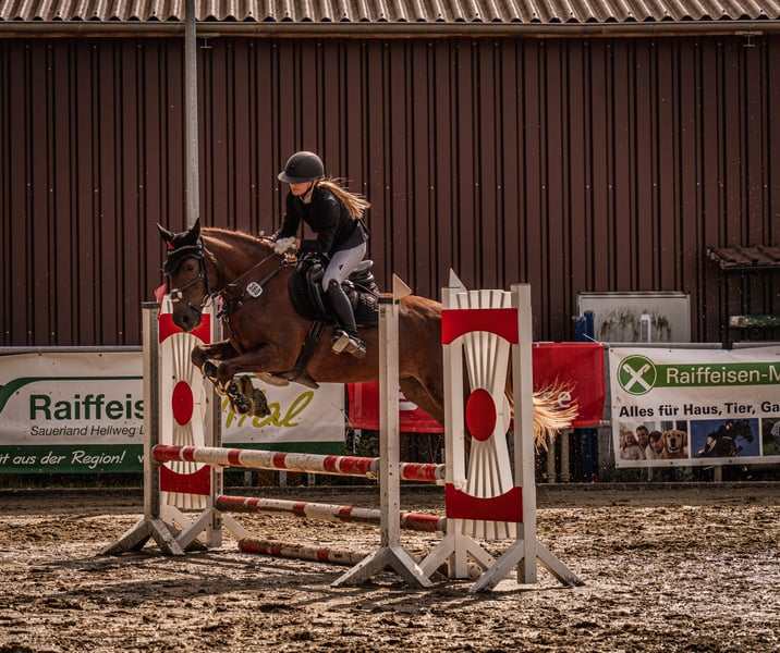 Ich biete meine Stute Judy (geb. 2016) zur Verfügung an. Sie soll nicht verkauft, sondern an jemanden vergeben werden, der Freude daran hat, mit ihr zu arbeiten, sie weiter auszubilden und gemeinsam Spaß am Reiten zu haben. Judy ist eine liebenswerte, sensible Stute, die einen ruhigen, sicheren Reiter braucht, dem sie vertrauen kann. Sie war im Herbst 2024 auf ihren ersten kleinen Springturnieren unterwegs und konnte sich dort sogar platzieren – sie hat also Spaß am Springen, wenn sie sich wohlfühlt. Auch im Gelände ist sie brav, wenn sie Vertrauen gefasst hat. Mit Geduld, Gefühl und einer klaren, liebevollen Führung ist Judy ein echtes Herzenspferd, das dir viel Freude bereiten kann – egal ob beim Springen, Reiten auf dem Platz oder gemütlichen Ausritten. Alle weiteren Infos, Konditionen und den Preis gerne auf Anfrage. Judy wird nicht verkauft, sondern bleibt weiterhin in meinem Besitz.