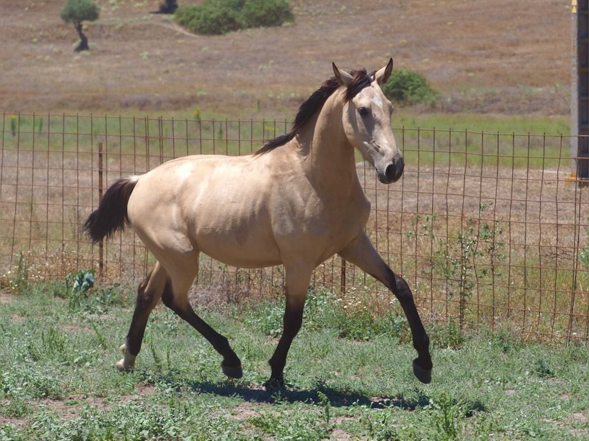 Compartimos con vosotros este elegante potro buckskin, hijo de una yegua lusitana y un caballo español, Nazareno FS, un semental negro hijo de la yegua reproductora de élite Coral XXV de la famosa yeguada Arroyomonte, conocida por ser galardonada como la mejor yeguada reproductora de doma clásica del mundo en varias ocasiones. Su madre es una yegua Lusitana de gran belleza, con aires fluidos y físico elegante. Tiene ante usted una excelente oportunidad de adquirir este interesante potro que tiene un gran potencial de futuro para desarrollar cualquier disciplina deportiva. Contacte con nosotros para más información.