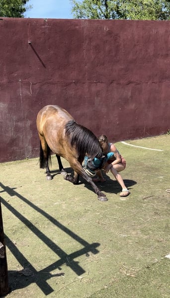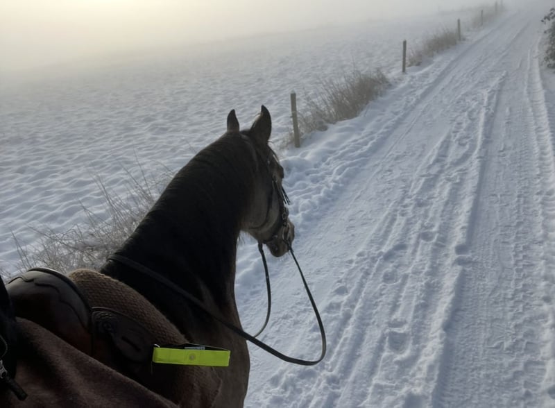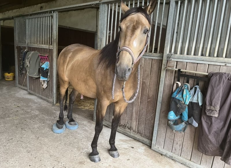 With a heavy heart, I have to sell my soulmate horse. Since he will only be sold into the very best hands, please read the ad carefully and only contact me if you have sincere interest in welcoming him into your life as a family member, partner, and friend. Turrón is an import Spanish (Conjunto Mestizo), in the beautiful "Bay" color, and has been by my side for five years. He is generally very people-oriented. However, he tends to form a close, special bond with his main handler and is therefore not a "family horse" or suitable for constantly changing riders. In terms of character, he is sensitive, playful, affectionate, intelligent, dominant, curious, and calm. He can be very subtle with body language, voice commands, or rider aids, but he can also try to assert his own will. Therefore, the person working with him should be calm, loving, consistent, confident, and fair. Turrón loves varied activities. Groundwork, Equikinetic, circus tricks, cavaletti work, walks, rides, etc. He is a "cool cat" and feels very comfortable in the terrain—both alone and with other horses. He has been ridden mainly in Western leisure riding but has also gained some experience with a riding instructor in groundwork and classical dressage (side movements, recently also renvers and travers in walk and trot, extending steps in trot, and half-steps on the way to piaffe. Also started with the Spanish walk under saddle) -> https://jennifer-pecat.de. Due to his breed, he was only backed late and with a lot of time. He is very herd-compatible and has even been kept with mares; however, for his nervous system, a herd of geldings is preferred. Since October, he has found his home in a private open stable in Oberkrüchten. I would very much like for him to stay there, as he clearly feels comfortable. It is a small, consistent herd that provides him with security and calm. His play and grooming needs are met. A 6-star deluxe VP stable—also for the human—would be ideal. Also important are opportunities for movement and retreat, as well as limited pasture turnout (2 hours per day, with very slow grazing). Due to his origins, he tolerates little pasture and is fed accordingly to a Mediterranean metabolism. Turrón is barefoot. Unfortunately, he is allergic to straw and pollen (currently taking Loratadine during pollen season). Otherwise, we have been fortunate—no colics, serious injuries, or other issues. He is vaccinated regularly (tetanus, influenza) and dewormed. He even allows his teeth to be floated bravely without sedation. He loads easily onto the trailer and remains calm during transport. Turrón is sold with accessories. These are high quality (Rieser, Signum, Hilburry, etc.) and are included for an additional €1,500. A veterinary health check (AKU) can be arranged at the buyer’s expense with a trusted veterinarian at Turrón’s stall. Provisional riding tests cost €40, which will be credited towards the purchase price if he is bought. *All information is provided to the best of my knowledge, but as this involves a living animal, no guarantee can be given.*