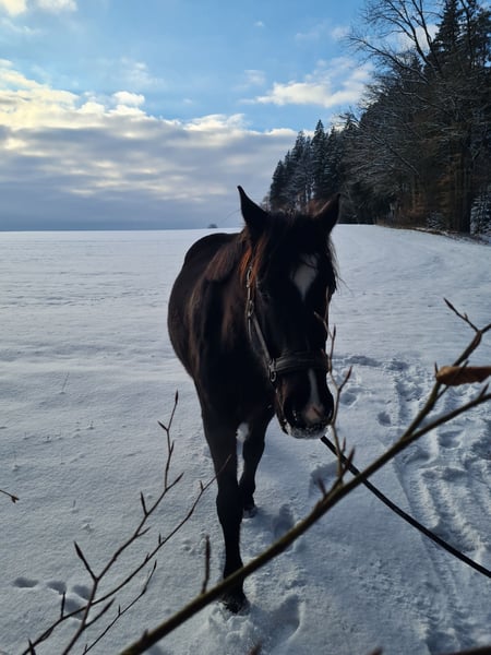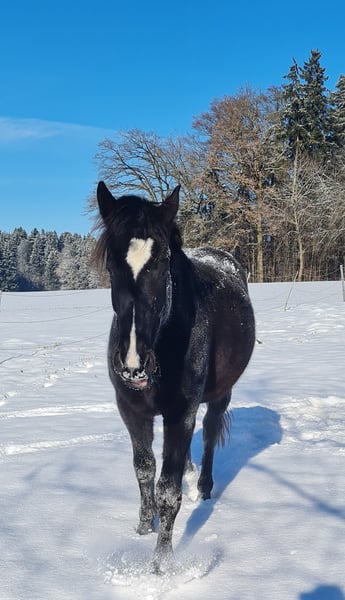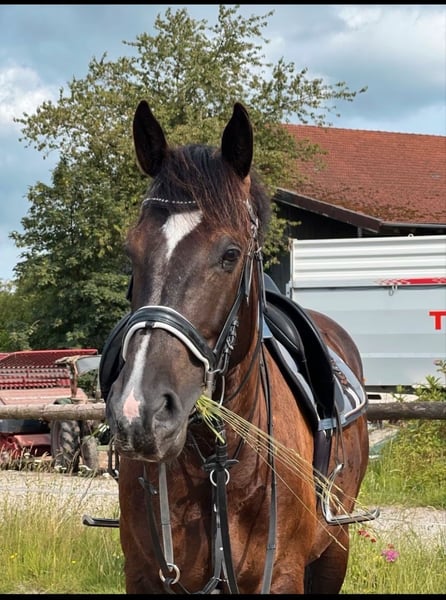 Schweren Herzens verkaufen wir unseren 9 jährigen ungarischen Warmblut Wallach aus Zeitmangel. Eventuell wäre auch eine Verfügung im Umkreis von 30 km vorstellbar. Er ist 160 cm groß und genoss eine schonende späte Ausbildung im Profi Beritt, quasi unverbraucht. Er ist sehr anhänglich, verschmust und liebt es gekrault zu werden, mit Lekerlies ist er auch immer bestechlich ;-) Er ist kerngesund, hat keinerlei Allergien oder Exeme noch hatte er irgendwelche Verletzungen. Bei uns wurde er überwiegend Freizeit mäßig im Gelände geritten, regelmäßiger Unterricht und Korrektur reiten unserer Reitlehrerin auf dem Platz. Er hat schöne weiche Gänge, geht flott vorwärts ist aber gut händelbar, hört gut auf Stimme. Freiarbeit macht ihm auch sehr viel Spaß. Natürlich ist er regelmäßig entwurmt, Hufe regelmäßig bearbeiten (Barhufer mit sehr guter Hufqualität und brav bei der Bearbeitung), in regelmäßigen Abständen der Ostheopatin vorgestellt und die Zähne sind frisch im Herbst gemacht worden. Bei uns steht er in einem kleinen Offenstall in gemischter Herde was super funktioniert (nicht hengstig). Wir würden uns auch für sein neues Zuhause Offenstall Haltung wünschen. Bei uns wird er englisch geritten könnten ihn uns aber auch gut als Western Pferd vorstellen. Er geht alleine und in der Gruppe ins Gelände, kennt Autos, Traktor, Maschinen, Hunde und was man hald noch so begegnen kann und ist dabei relativ relaxt, aber es ist ein Lebewesen und er kann sich auch mal erschrecken, er ist aber kein Durchgängen und kommt sehr schnell wieder zur Ruhe. Durch seine späte Ausbildung ist er (noch) kein Kinder oder Anfänger Pferd, er brauch jemanden der ihm Sicherheit geben und Grenzen setzen kann. Er ist nie böse, kein treten oder beißen, nur am Anfang testet er gerne mal ob man sich durchsetzen kann ;-) Keine Abgabe an Reitschulen und Händler! Wir wünschen uns jemanden der ihn weiter fordert und fördert und bei dem er Herzenspferd werden darf. Gerne ein ausgiebiges kennenlernen damit man schauen kann ob es passt, er soll keinen Wanderpokal werden. Zubehör könnte gegen Aufpreis mit erworbenen werden, unter anderem ein im Herbst von der Sattlerin neu gebraucht gekaufter und angepasster Sattel von der Marke Sommer. Bei weiteren Fragen oder Interesse ihn kennen zu lernen, freuen wir uns auf nette Nachrichten :-))