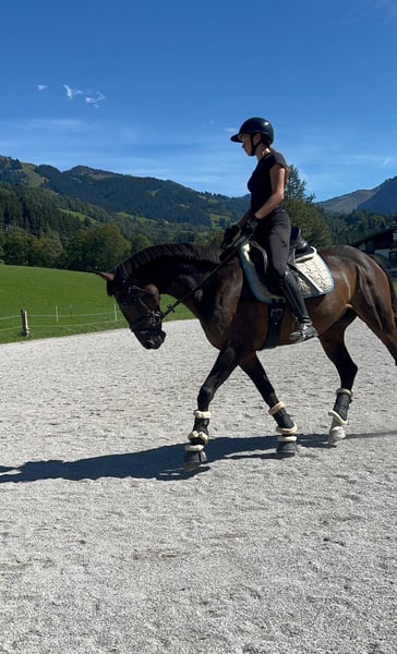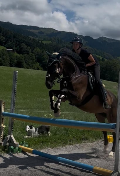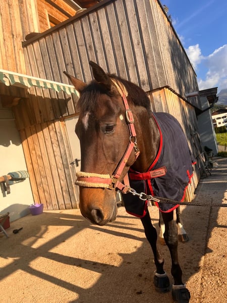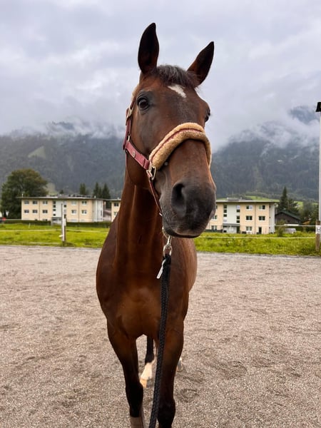 For sale is an elegant bay Croatian Warmblood gelding, born in 2015. Standing at 16.1 hh, he is ideal for ambitious riders seeking a reliable and versatile horse. He arrived as a foal and has been lovingly and consistently trained since then. He shows great potential for dressage and impresses with his pleasant temperament, lightness in the aids, and willingness to learn new things. The gelding is healthy, ridden 5 to 6 times a week, and well-trained. He is suitable for both competitive riders and serious leisure riders who value correctly trained horses. He has already competed at small amateur shows and participated in various riding games – always reliable and steady-minded. He handles even music bands passing by without any issues or losing his composure. However, he is not an ideal beginner horse at the riding arena, as he prefers to be ridden with finesse. Out on hacks, he can be quite lively – a brief glance is enough to catch his attention. Optional: a dressage saddle with bridle tailored to him, as well as a versatile jumping saddle (show jumping line) with matching bridle, can be purchased additionally. Zeus is located in Kitzbühel! I can arrange transportation to his new home. If interested or for further questions, I am happy to welcome you for a viewing and trial ride. A trial ride fee of €30 applies, which will be credited toward a purchase. Feel free to contact me at any time – I look forward to hearing from you!