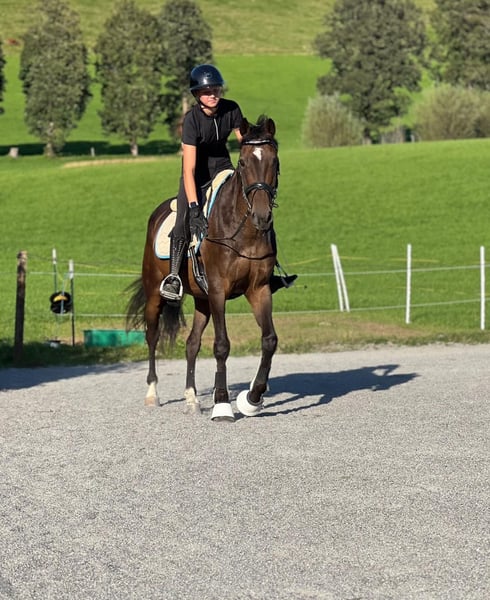 Zum Verkauf steht ein eleganter brauner kroatischer Warmblut-Wallach, geboren im Jahr 2015. Mit einem Stockmaß von 165 cm ist er ideal für ambitionierte Reiter, die ein zuverlässiges und vielseitiges Pferd suchen. Er ist als Fohlen zu mir gekommen und wurde seitdem liebevoll und konsequent ausgebildet. Er bringt viel Potential für Dressur mit und überzeugt durch sein angenehmes Wesen, seine Leichtrittigkeit sowie seine Bereitschaft, Neues zu lernen. Der Wallach ist gesund, wird 5–6-mal die Woche geritten und ist gut ausgebildet. Er eignet sich sowohl für den Turnierreiter als auch für den ambitionierten Freizeitreiter, der Wert auf ein korrekt gearbeitetes Pferd legt. Er hat bereits an kleinen Amateurturnieren teilgenommen und war auch bei diversen Reiterspielen dabei – stets zuverlässig und nervenstark. Selbst hinter einer Musikkapelle geht er problemlos und ohne sich aus der Ruhe bringen zu lassen. Allerdings ist er kein Anfängerpferd am Reitplatz, da er fein geritten werden möchte. Beim Ausreiten hingegen kann neben ihm eine Bombe platzen – das ist für ihn nur ein kurzer Blick wert. Optional können ein auf ihn angepasster Dressursattel mit Zaumzeug sowie ein Vielseitigkeitssattel (Sprunglinie) mit passendem Zaumzeug dazugekauft werden. Zeus steht in Kitzbühel! Den Transport in seine neue Heimat kann ich übernehmen. Bei Interesse oder weiteren Fragen stehe ich gerne für eine Besichtigung und Proberitte zur Verfügung. Für ein Probereiten verlange ich 30 €, die bei einem Kauf selbstverständlich gutgeschrieben werden. Kontaktieren Sie mich jederzeit – ich freue mich auf Ihre Nachricht!