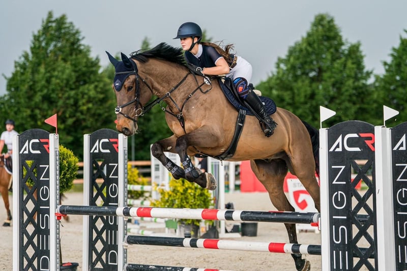 Cavallo da salto equilibrato, pronto per essere montato