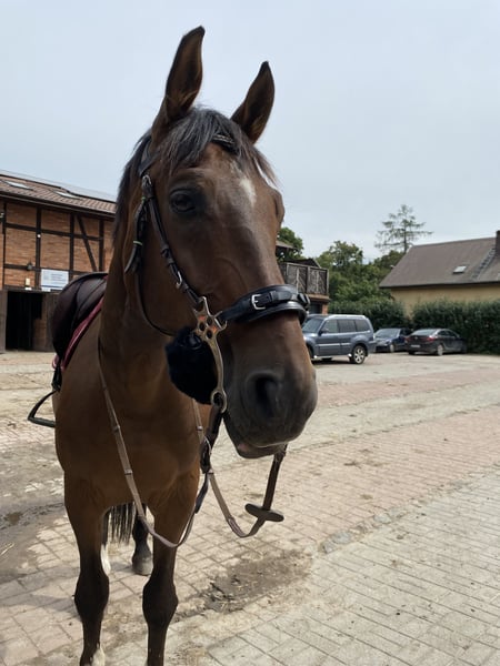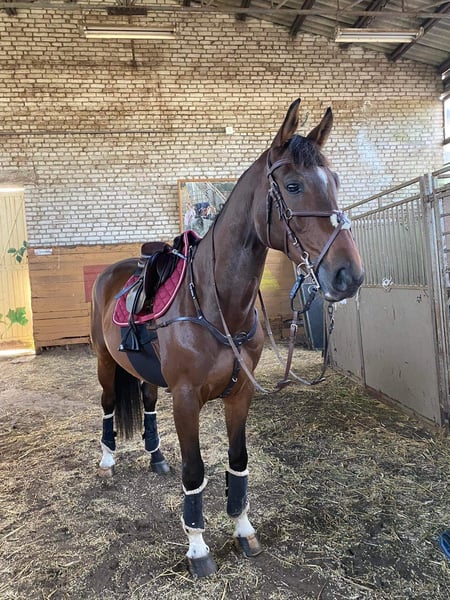 For sale: a beautiful warmblood gelding, born in 2014. Chestnut in a stunning, elegant shade, standing approximately 17.5 hh. Excellent for show jumping and other equestrian disciplines. Perfect for riders seeking a versatile and experienced horse. He has competed in classes up to 1.20 m in jumping and in dressage up to level D, and is capable of performing elements of level N, including flying changes, half-pass, traverses, shoulder-in, and leg-yield during training. The horse is being sold due to an injury of the rider. Currently ridden by a 13-year-old girl. Please contact me for more information!