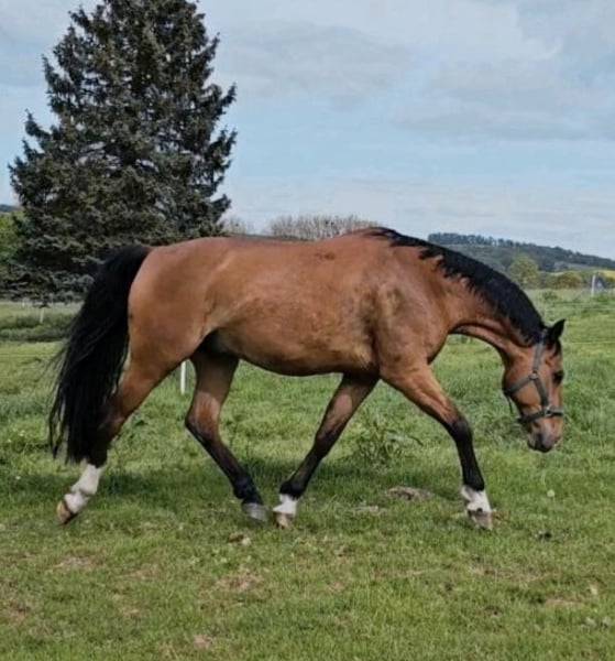 Verkaufe Warmblut-Wallach – Perfekt für Freizeit und Hobby! Zum Verkauf steht ein wunderschöner brauner Warmblut-Wallach, geboren im Jahr 2010. Mit einem Stockmaß von 165 cm bietet er eine angenehme Größe für vielseitige Freizeitaktivitäten. Er liebt ausgedehnte sportliche Ausritte. Man kann ihn aber genauso gut auch eine Schrittrunde reiten, Spazieren gehen oder ihn betüddeln. Er ist eher schreckhaft was sich in Zusammenzucken äußert. Man kann ihm aber alles zeigen und üben und dann lässt er sich drauf ein. Er geht über Brücken, ins Wasser, kennt Hunde und Kühe, Straßenverkehr und Traktoren. Er ist englisch ausgebildet. Ich reite ihn aber freizeitmäßig mit Westernsattel. Er ist für alles offen und lässt sich auch mit Lammfellsattel und gebisslos reiten. Ins Gelände geht er in der Gruppe an jeder Position und auch alleine. Hat bei mir nie gebuckelt oder ist gestiegen. Hervorzuheben ist seine schön gesprungene Galoppade und sein fleißiger Schritt mit der ein Ausritt richtig Spaß macht. Er kann in gemischten Herden stehen. Kennt im Sommer 24/7 Weidehaltung und im Winter Offenstall oder Paddockbox. Lässt sich verladen und ist Barhufer. Wenn die Beschreibung deinem Traumpferd nahe kommt, dann melde mit deiner Telefonnummer für Fotos und weitere Informationen.