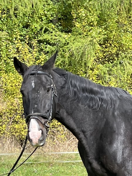 Our 16-year-old, 1.65 m tall gelding has a very gentle temperament. He is easy to groom and lead, and is farrier- and loading-trainable. He has a solid basic education, is familiar with the riding arena, indoor arena, and outdoor terrain. He would be well suited as a school horse. He can be ridden up to E-level dressage and enjoys jumping small fences. He has a valid equine passport, is vaccinated and dewormed. Transport can be arranged! Contact: 0160/1884786