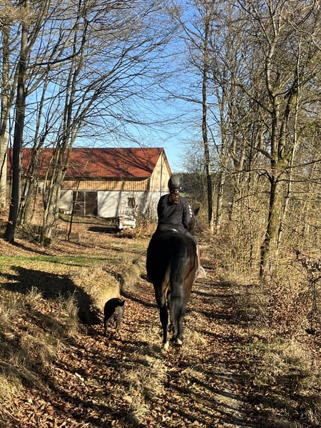 Our friendly leisure horse is 16 years old and 15.7 hands tall. He is completely safe in traffic and on the trail. Our gelding is familiar with the indoor arena, the riding arena, and the lunge line. He is a very sweet and absolutely reliable gelding in handling. He has an equine passport, is microchipped, and dewormed.